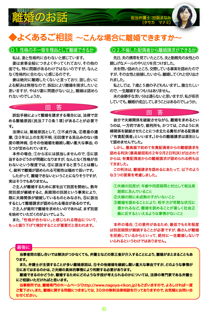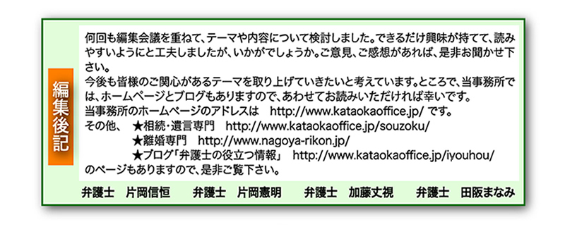 名古屋・大垣の弁護士事務所。離婚、相続・遺言、不当解雇、債務整理、契約書作成、刑事事件、取引紛争、渉外法務などの法律相談。