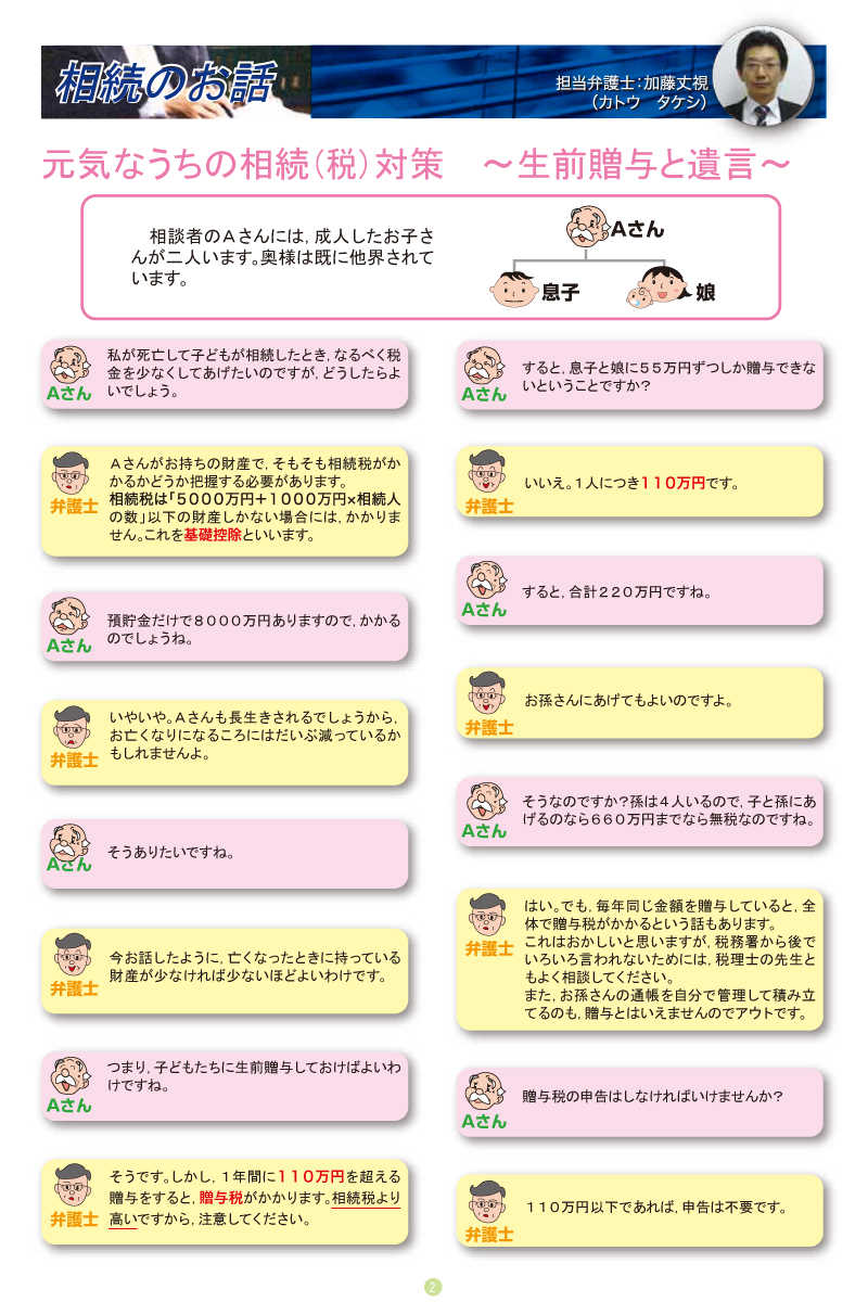 元気なうちの相続(税)対策 ~生前贈与と遺言~