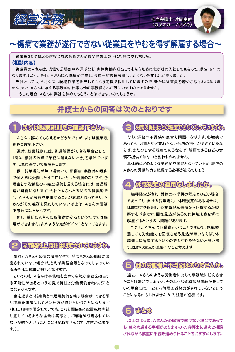 傷病で業務が遂行できない従業員をやむを得ず解雇する場合