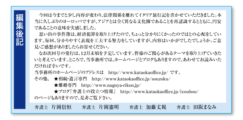 名古屋・大垣の弁護士事務所。離婚、相続・遺言、不当解雇、債務整理、契約書作成、刑事事件、取引紛争、渉外法務などの法律相談。