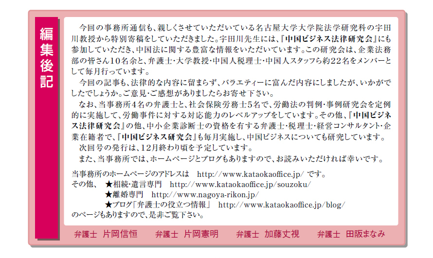 名古屋・大垣の弁護士事務所。離婚、相続・遺言、不当解雇、債務整理、契約書作成、刑事事件、取引紛争、渉外法務などの法律相談。