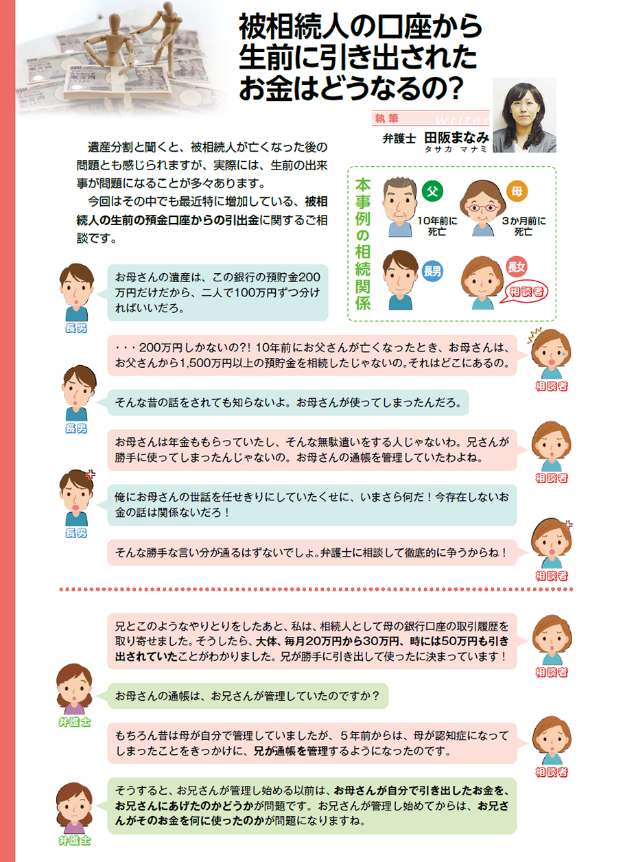 ~被相続人の口座から生前に引き出されたお金はどうなるの?~