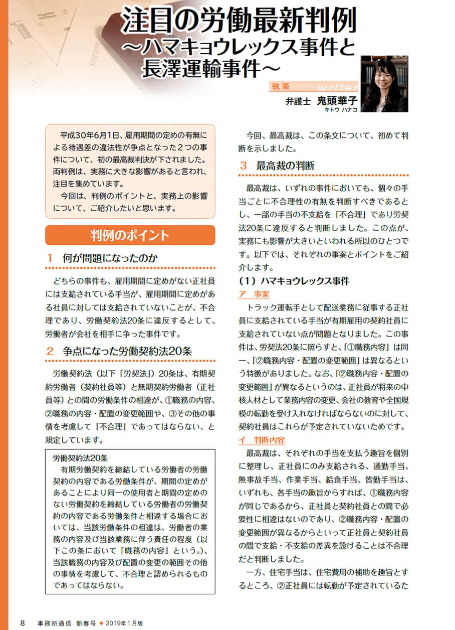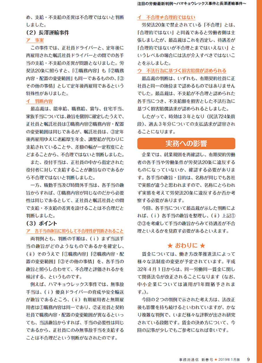 • 注目の最新判例 ~ハマキョウレックス事件と長澤運輸事件~