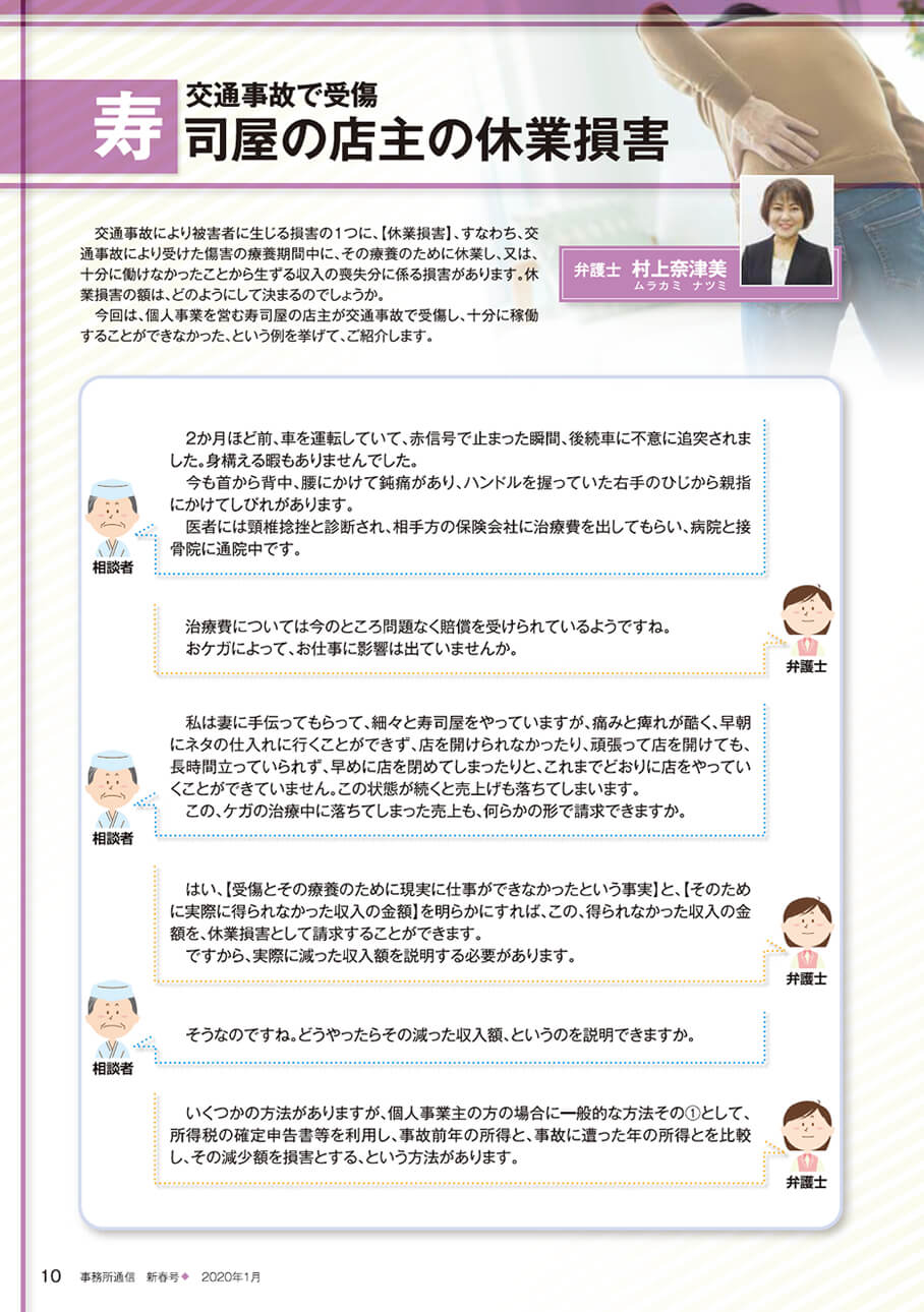 • 交通事故で受傷 寿司屋の店主の休業損害