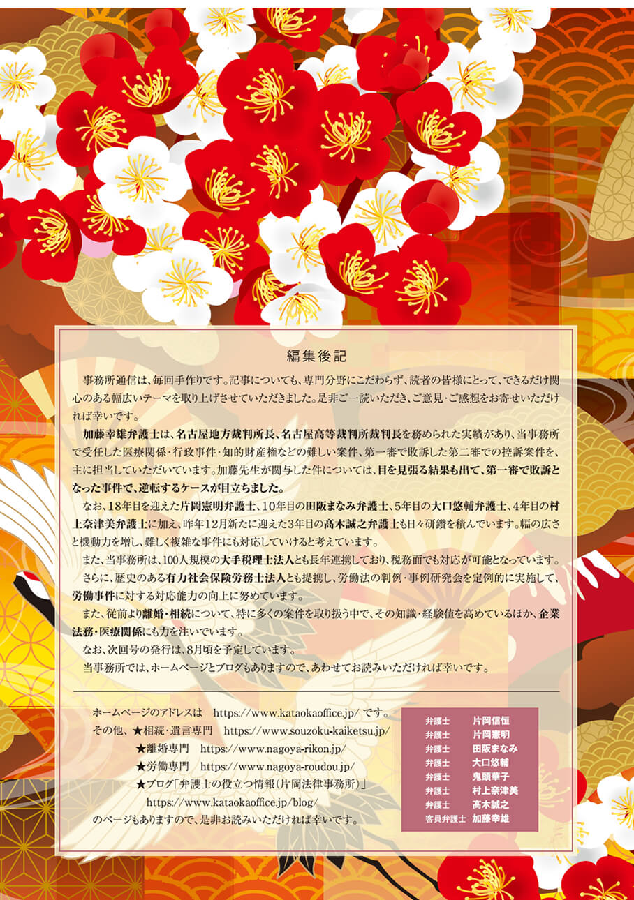名古屋・大垣の弁護士事務所。離婚、相続・遺言、不当解雇、債務整理、契約書作成、刑事事件、取引紛争、渉外法務などの法律相談。