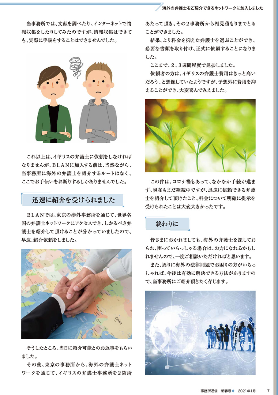 • 海外の弁護士をご紹介できるネットワークに加入しました