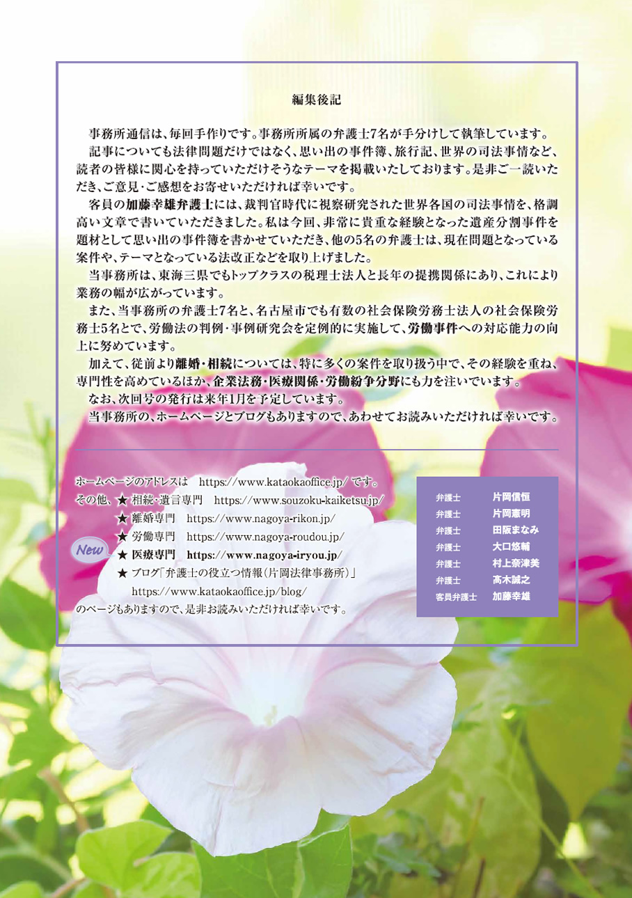 名古屋・大垣の弁護士事務所。離婚、相続・遺言、不当解雇、債務整理、契約書作成、刑事事件、取引紛争、渉外法務などの法律相談。