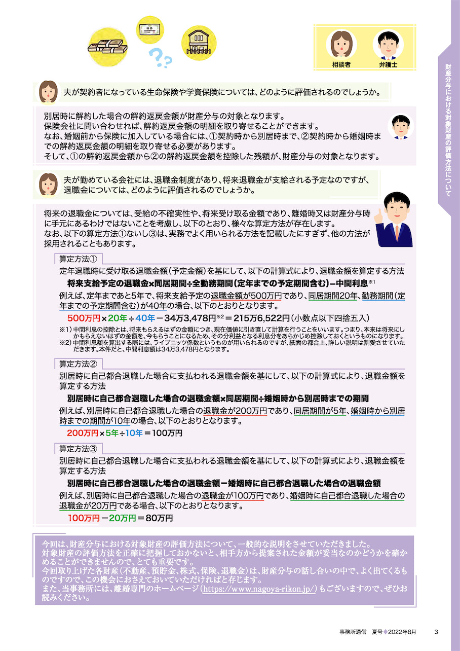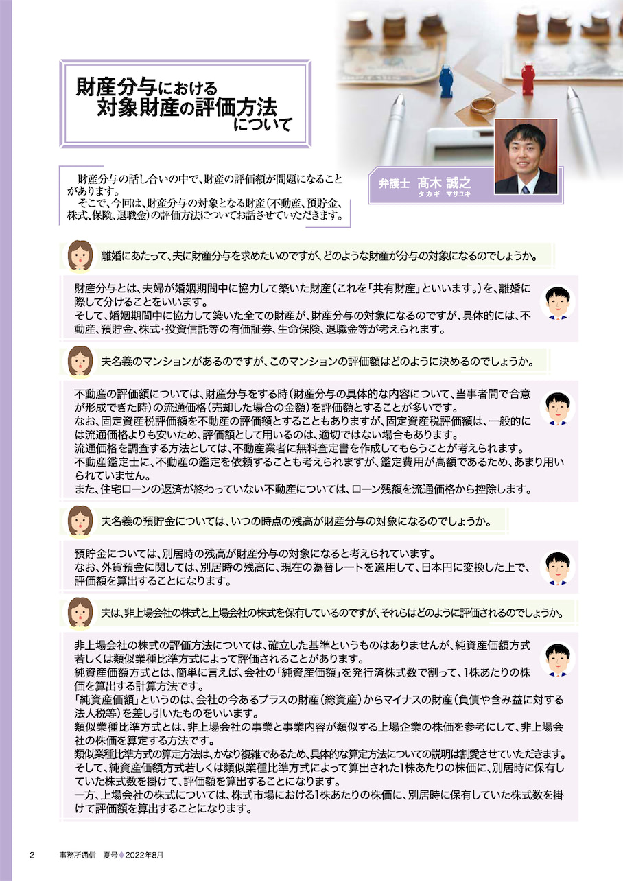 • 離婚のお話 ~財産分与における対象財産の評価方法について~